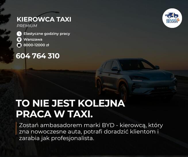 WARSZAWA Pracuję przy rekrutacji kierowców BYD Premium Szukamy kilku solidnych osób, które chcą po prostu dobrze ...